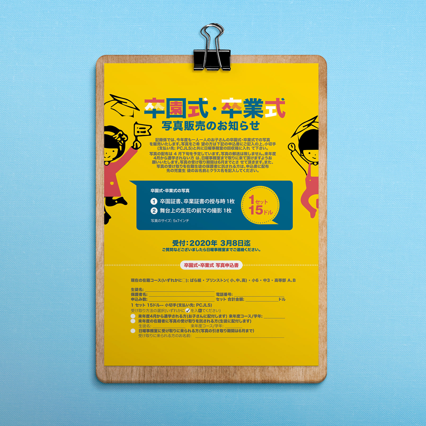 An order form for the graduation pictures of a Japanese language school.